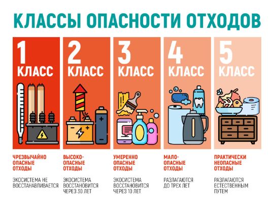 Промышленные и прочие отходы с 1 по 4 класс опасности